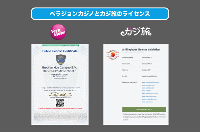 - ベラジョンもカジ旅もキュラソーライセンスなので安全性は同じ