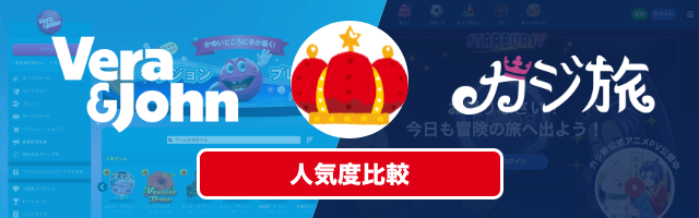 ベラジョンカジノが人気度、利便性においてカジ旅より優れているため、ベラジョンカジノが総合力で勝利しました。