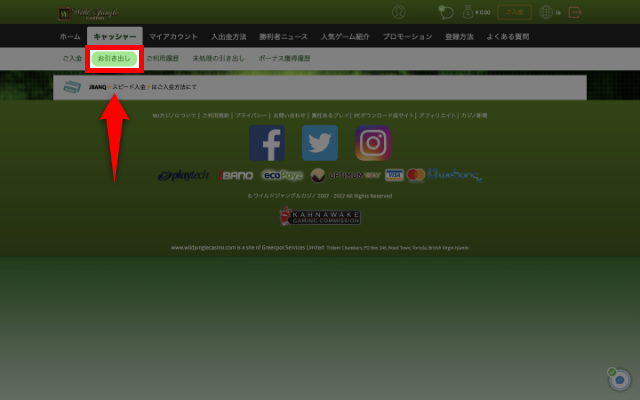 ワイルドジャングルカジノの出金手順