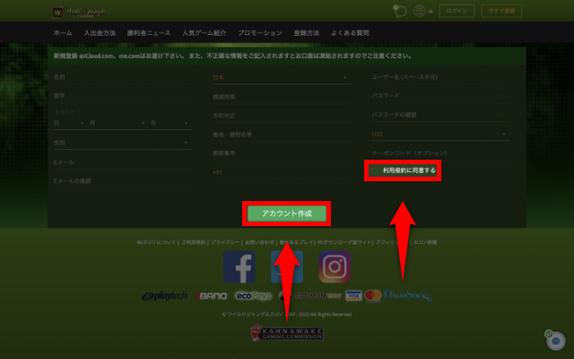 ワイルドジャングルカジノの登録方法