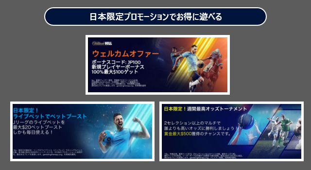 日本代表戦が開催されるときはウィリアムヒルカジノのプロモーションを要チェックです。