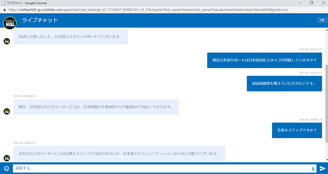 また、ウィリアムヒル日本語サポートを高く評価する声もいくつか見受けられました。