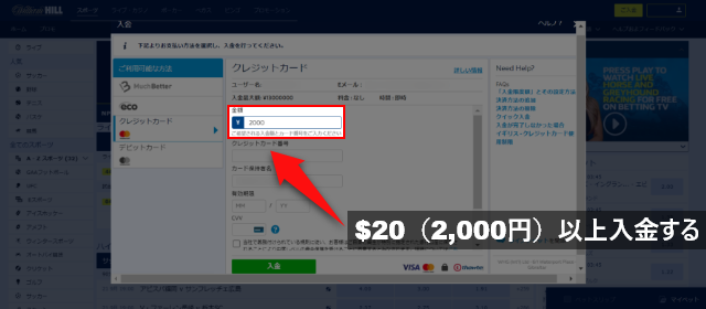 当プロモーションを利用するためには$20(2,000円)以上の入金が必要です。