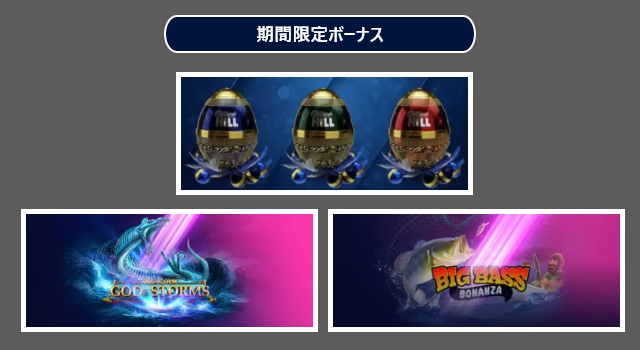 | 期間限定ボーナス | ボーナスによる | ボーナスによる | ボーナスによる |