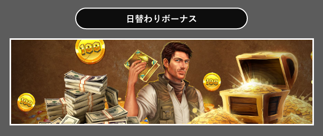 | 日替わりプロモ | フリースピンや入金ボーナスなど様々なボーナスプロモーションを日替わりで提案 |