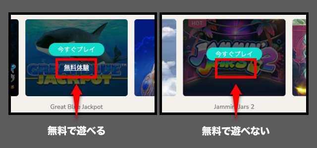 一部カジノゲームは無料で遊べます。遊んでみたいゲームがあったら、ゲームアイコンにカーソルをあわせてみてください。「無料体験」と表示されるゲームは無料プレイ対象です。
