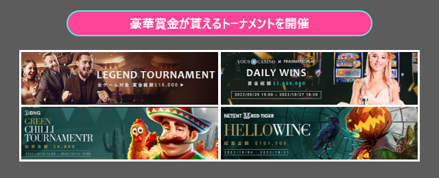 ユースカジノでは毎日・毎週様々なトーナメントを開催しています。