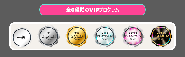 ユースカジノのVIPプログラムは全6段階あり、VIP昇格するたびに特典内容が豪華になっていきます。