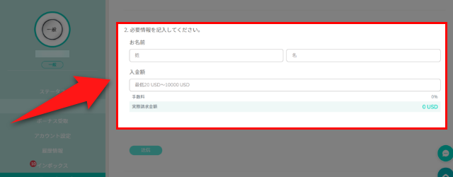 「2.入力情報」を全部入力し終わったら、最後に「送信」をタップ。決済方法側で送金実行すれば出金手続きは完了です。