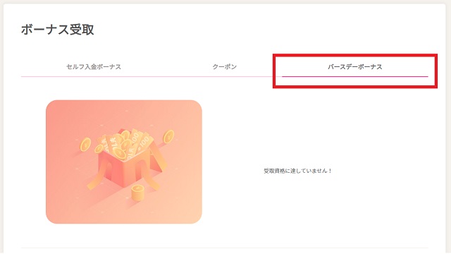 - バースデーボーナスの出金条件はボーナス額の1倍です。
