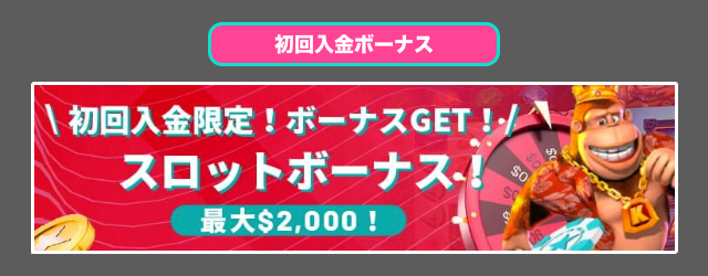 | 初回入金スロットボーナス | 最大$2,000 | 25倍または30倍 | |