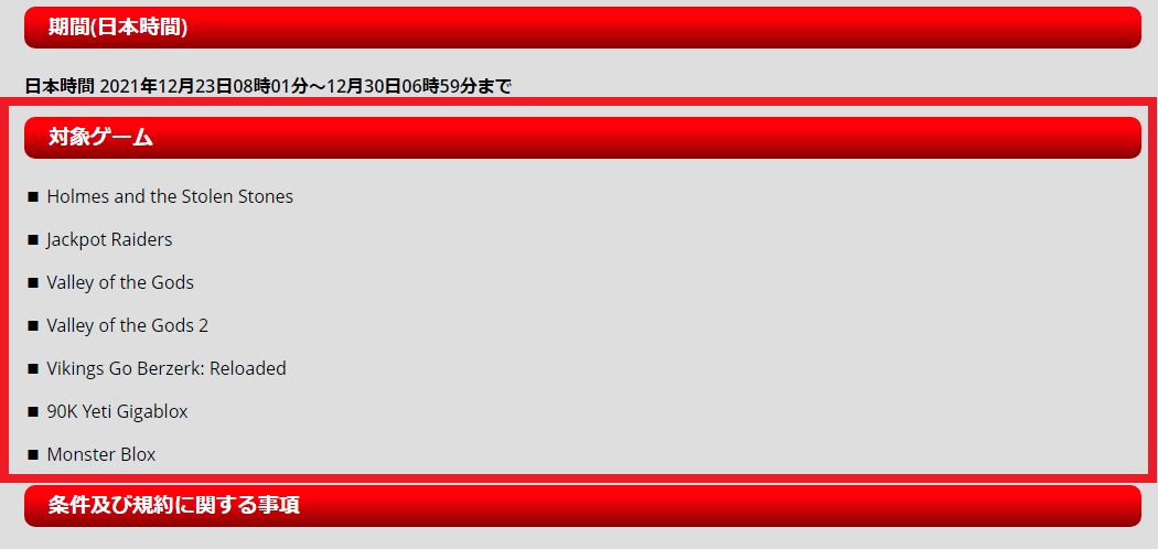 禁止ゲームや除外ゲームとは、ボーナスを使ってはいけないゲームのことです。一度でも遊ぶとボーナスおよび勝利金が没収されてしまいます。