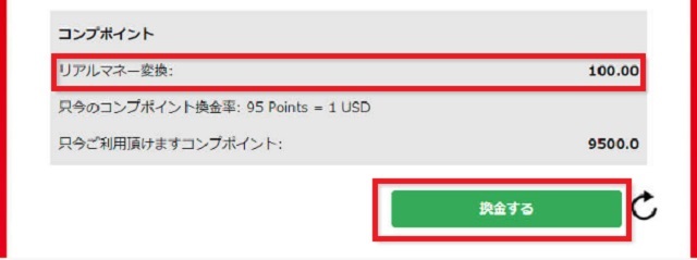 他ボーナスのように出金条件や有効期限といった煩わしい制約はありません。貯まったポイントはワンクリックで換金手続き可能です。