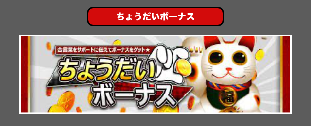 「ちょうだいボーナス」は、合言葉をサポートに送るだけで貰えるボーナスです。