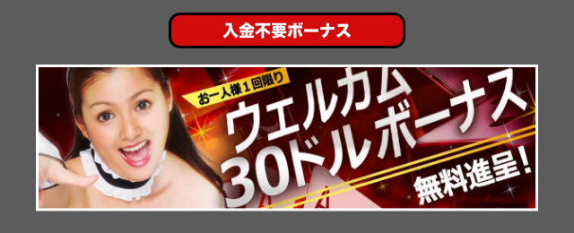 ジパングカジノは、初めて登録する方のために入金不要ボーナスを贈呈しています。ボーナス額は$30で、初めて登録する方なら誰でも獲得できます。