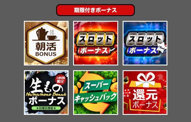 還元率100%超えの生ものボーナスが提供されることもありますが、有効期限が24時間と短い分、出金条件を有効期限内に消化できず没収されるリスクも高くなります。貰う場合は遊ぶスロットを事前に決める等、入念に計画を立てましょう。