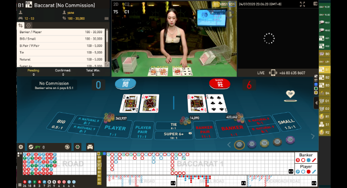 ライブカジノのバカラはどれも手数料の有無を選択でき、手数料をなしに設定するとバンカーが勝った際の手数料5%が無くなる代わりに、バンカーが「6」で勝った場合のみ50%の手数料が差し引かれます。