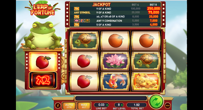 「LEAP OF FORTUNE」は日本のパチスロのように3×3のリールが特徴のスロットです。