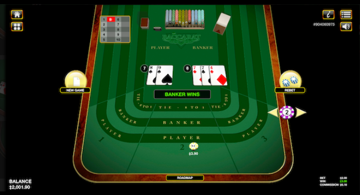 本場カジノでも大人気のバカラゲームです。履歴が表示されるので、現在のカードの傾向を見極めながらベットすることができます。