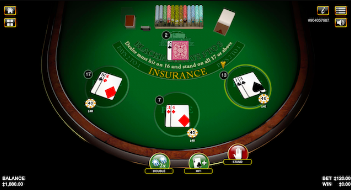 最大3箇所までマルチベットができ、自分が「ヒット・スタンド」する・しないにかかわらずディーラーの手札は変わらないのが特徴です。