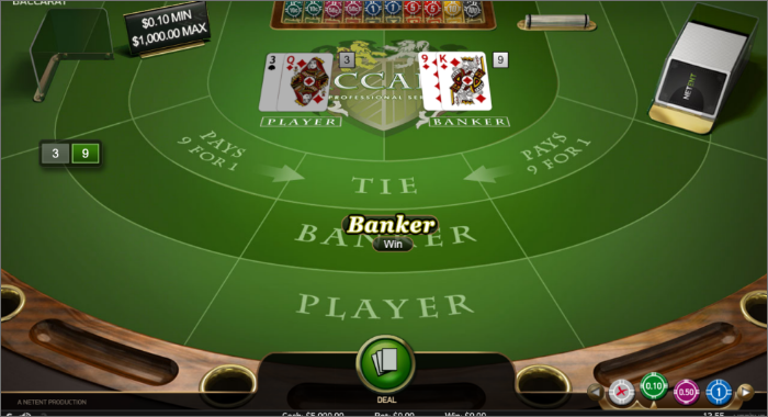 NetEntのテーブルゲームで人気が高い「Baccarat Pro」です。全体的にすっきりとしたレイアウトとなっているので、直感でプレイできるのが魅力の一つです。