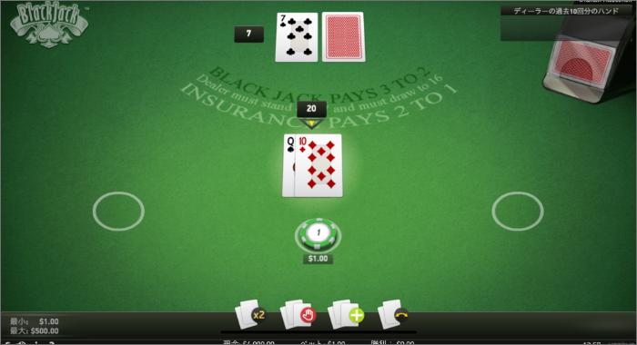 NetEntのゲームの中で最も還元率が高いのが「Blackjack」です。このブラックジャックは、最大3箇所までマルチベットが可能となっています。