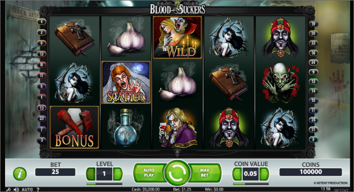 吸血鬼がテーマのビデオスロットです。還元率は97.6%となっていて、ボーナスゲームでドラキュラ退治を楽しむことができます。