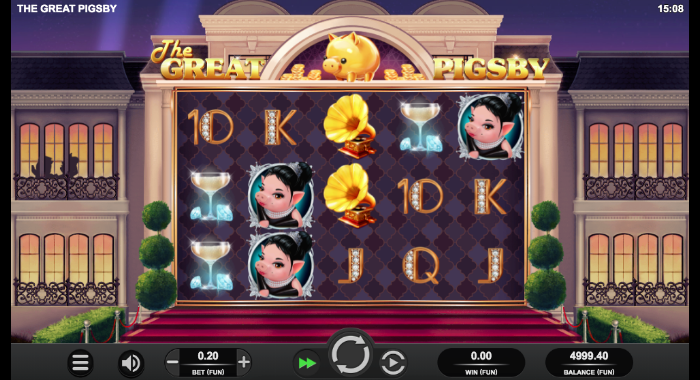 「The Great Pigsby」はリスピンと縦に拡大するワイルドが特徴となっていて、ワイルドが出現するたびに画面上部の金色の豚に金貨が蓄積されていきます。