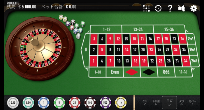「Roulette NEO」はシンプルなヨーロピアンルーレットで、マックスベット金額は5000ドルと非常に高額に設定されているので、ハイローラーでも十分に楽しめます。