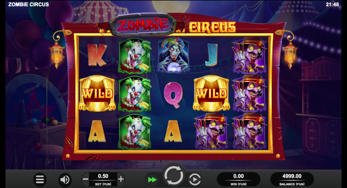 「Zombie Circus」はボーナスの図柄を揃えた時に発生するボーナスゲームが特徴的で、5択の中から1つを選んでフリースピンの回数やワイルドの役割を果たす図柄を選択します。