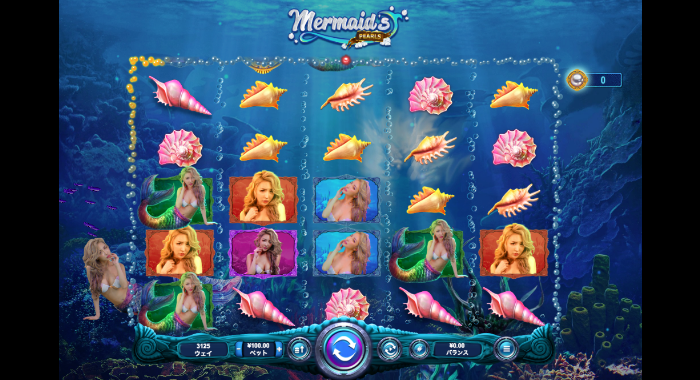 第3位はマーメイドをモチーフとした「Mermaid’s Pearls」です。このスロットはペイラインが3125通りあり、さらに通常ゲームで出現するパールの図柄が大きな特徴となっています。