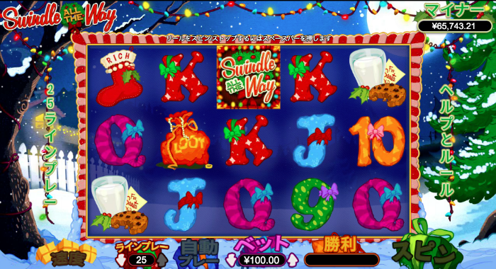 「SWINDLE ALL THE WAY」は泥棒とクリスマスがモチーフとなっていて、フリースピン前に行われるミニゲームでは部屋に忍び込んだ泥棒を見つけるたびにスピンの回数やマルチプライヤーが増加するという仕様になっています。
