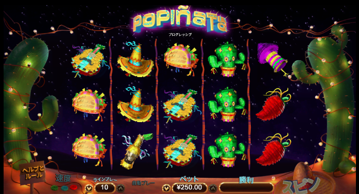 「Popinata」はワイルドの図柄となっているポニーが出現すると縦1リールに拡大し、ワイルドは固定のままリスピンするという特性があります。