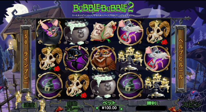 「BUBBLE BUBBLE 2」は3種類の中から選択可能なフリースピンが特徴で、スピン回数も数十回という単位で増加するので、運がよければかなりの回数を無料で回すことができます。