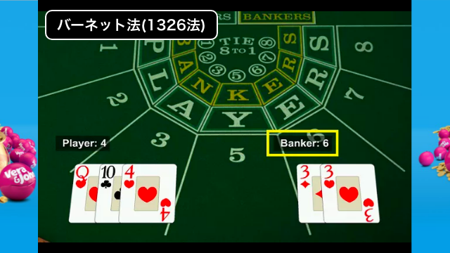 PLAYER「4」、BANKER「6」。