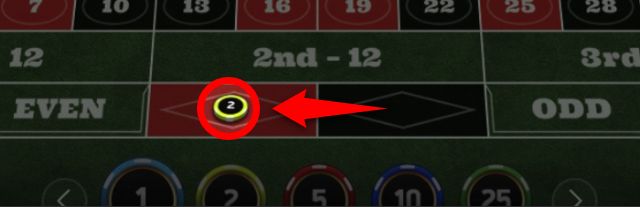 文字だけだとイメージが使い方が分からない人もいると思うので、ここでは実際のカジノゲームを用いてマーチンゲール法の使い方をが画像付きで解説していきます。