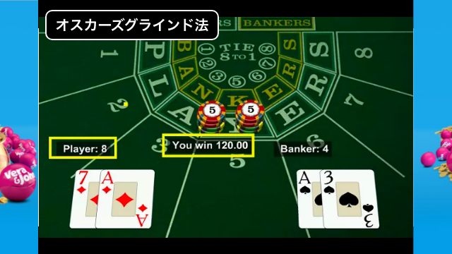 オスカーズグラインド法は、1セットのベット額を事前に決めてからゲームを開始し、勝敗によってベット額を変える必勝法です。