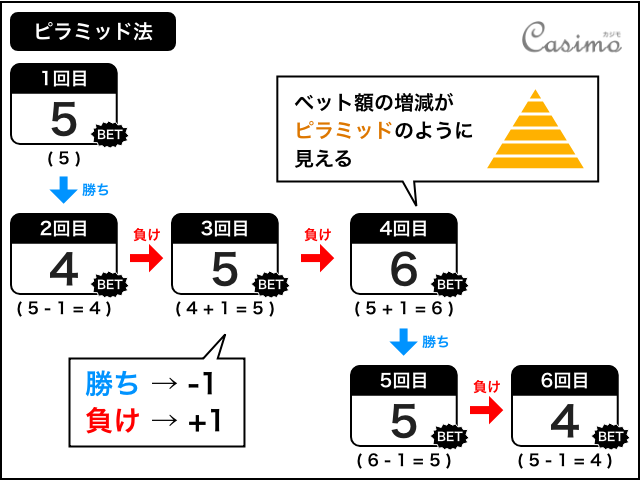 【カジノゲームの賭け方・必勝法】ピラミッド法(ダランベール法)の使い方を徹底解説!