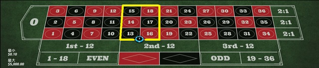 3セット目は「13,14,15,16,17」にダブルストリートベットします。